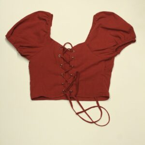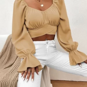 Scoop Neck Ruched Bust Flounce Sleeve Crop Top