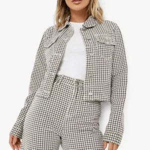HOUNDS TOOTH CROPPED DENIM JACKET