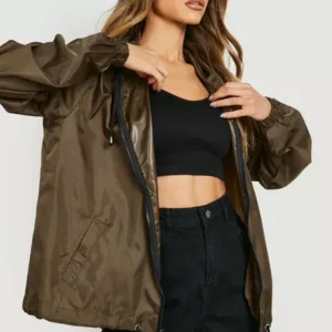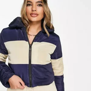 I Saw it First cropped puffer jacket in colourblock navy and beige