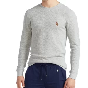 Men’s Waffle Knit Denim Bear Logo Long-Sleeve Sleep Shirt