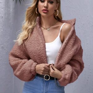 Zip Up Drop Shoulder Teddy Jacket