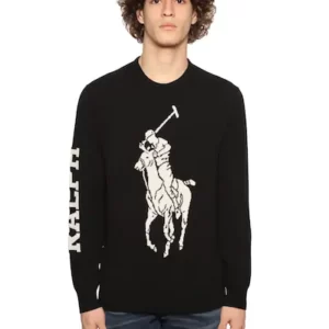 Men’s Black Riding Bear Waffle Knit Thermal Crew-Neck Shirt