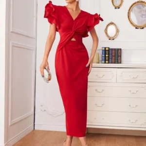 Butterfly Sleeve Twist Front Dress