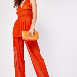 Sheer Pleated Top And Trousers Set