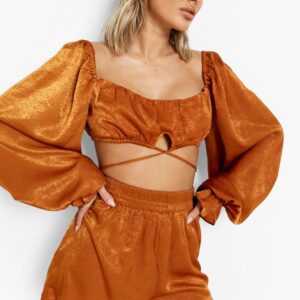 Puff sleeve front criss cross tie crop top